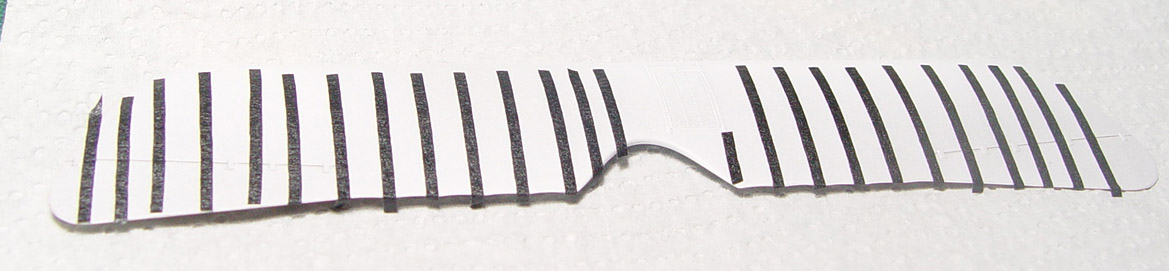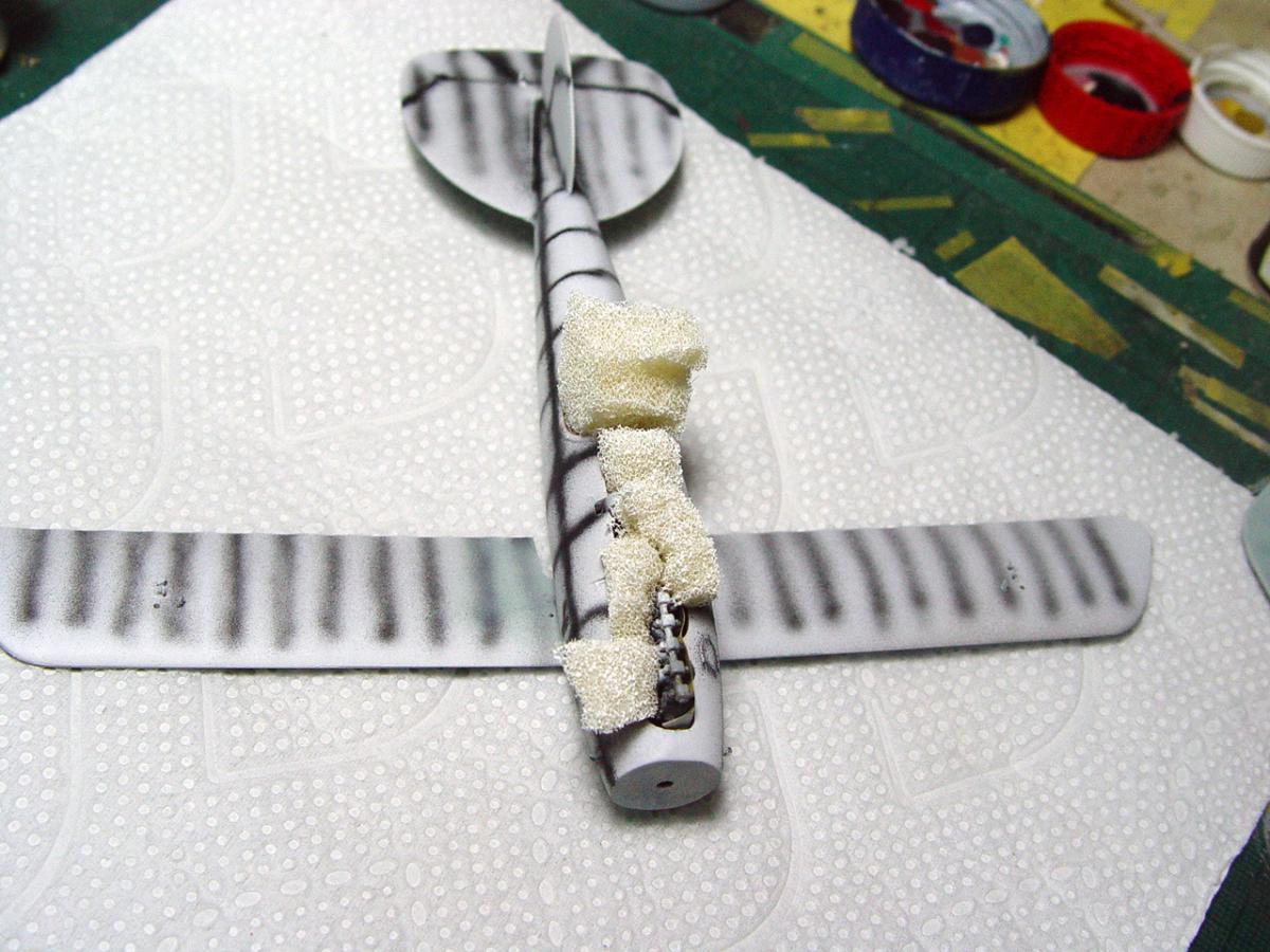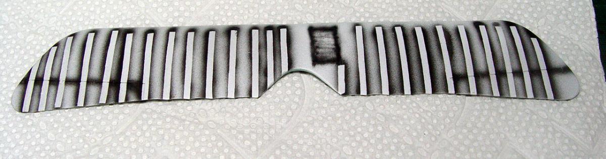 For the upper wing, i taped the "crests" of the "waves", i sprayed some black and then i removed the tape, having ready for final paint the surface that you can see in the image. For the lower wing instead I went free-hand, but this time i sprayed the black on the top of the "crests" (just the opposite). Better one or the other method? I leave the sentence to you, looking at the final reveal photos.