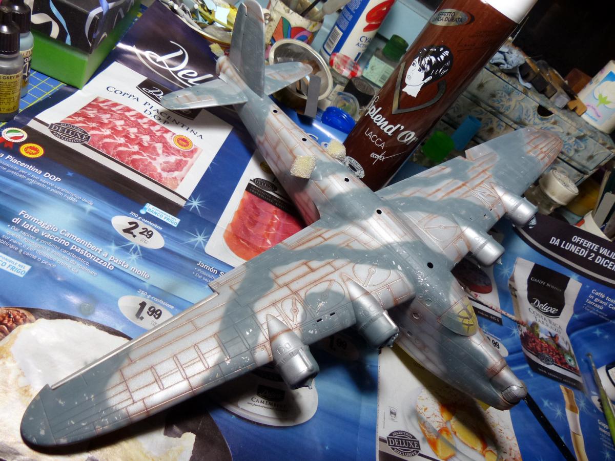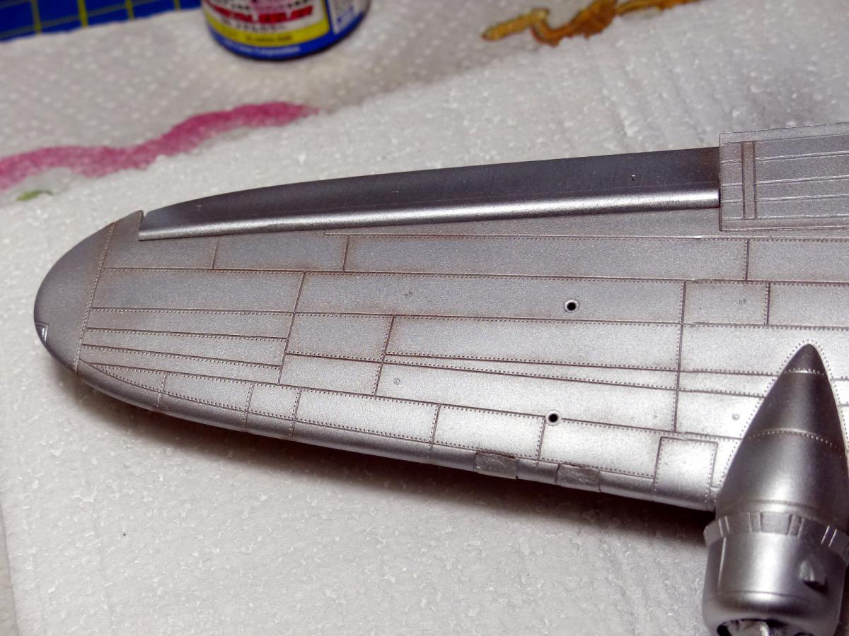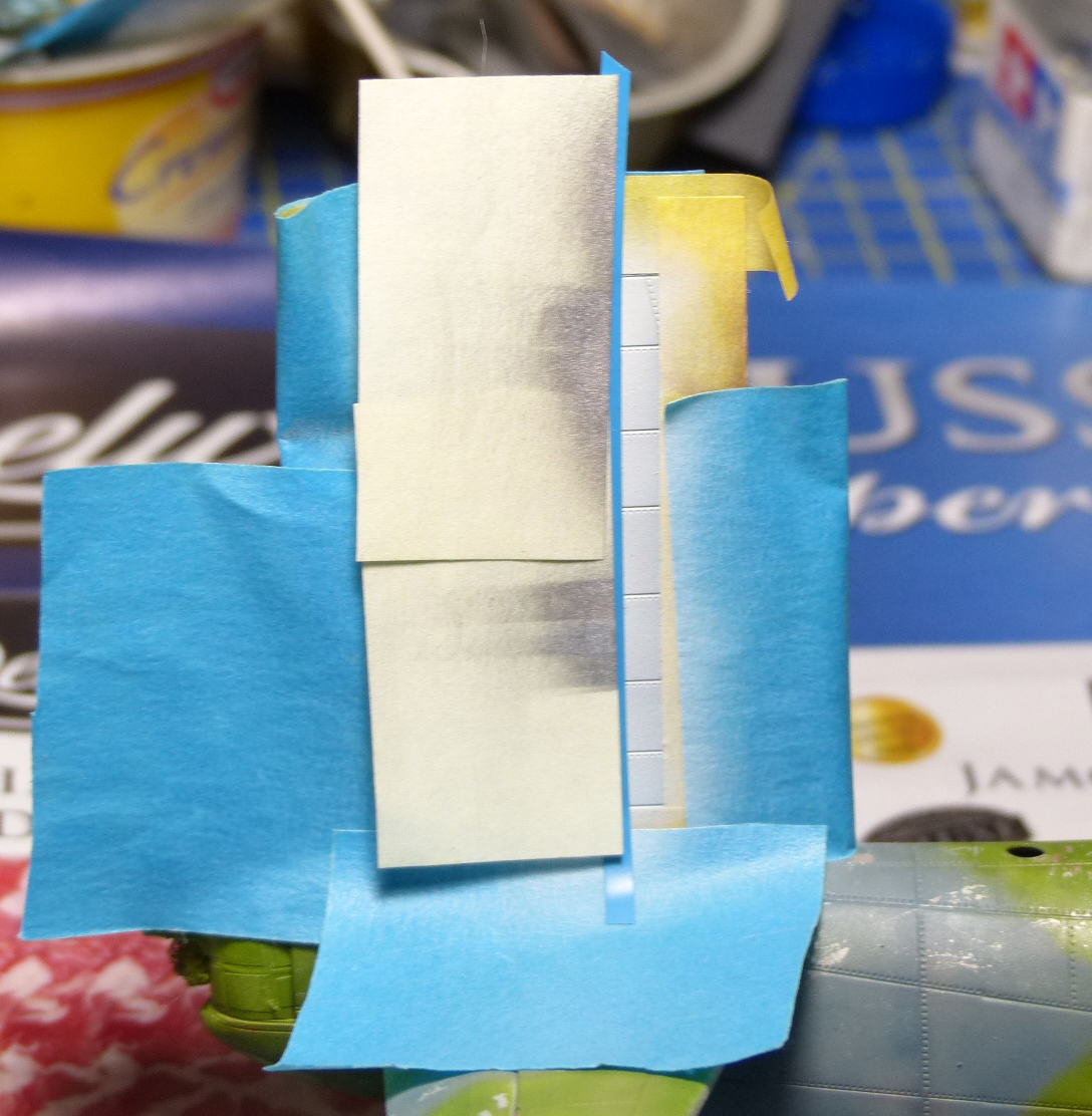 The next step was to paint the lower fuselage and lower side of the wings in MetalMaster buffable allumium color, followed by some masking with Post-it to change the color of some panels.