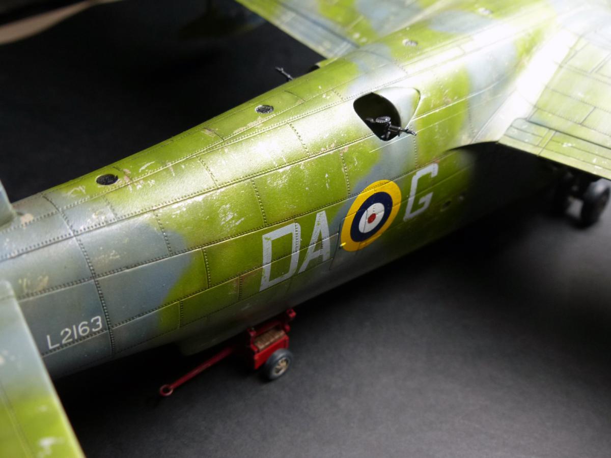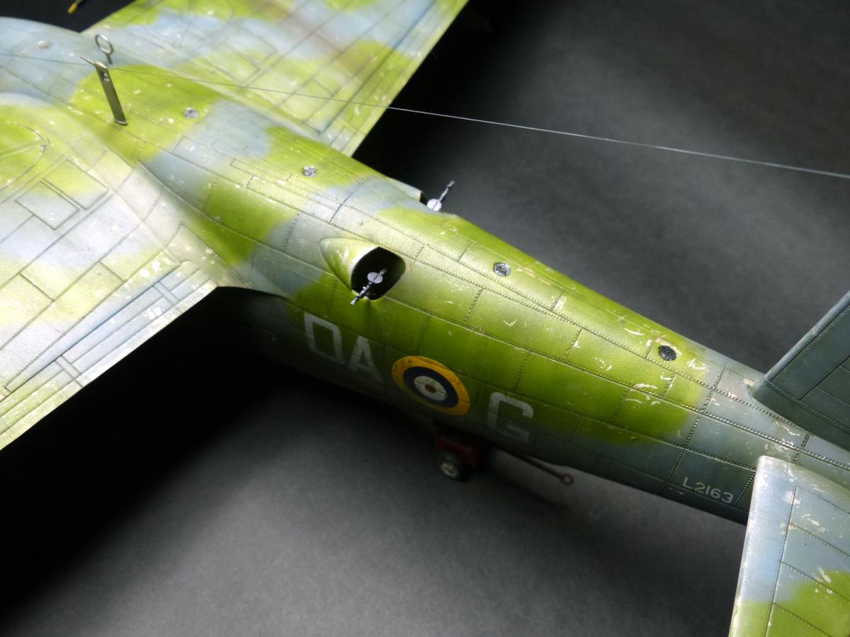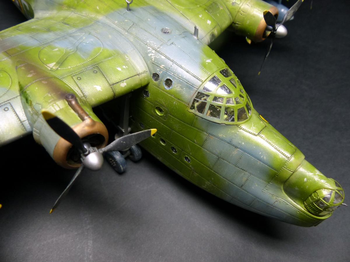 With the weathering completed i turned my attention to the small windows on the top fuselage: indeed, when i closed the fuselage, i left them open, because i didn't trusted in the way suggested by Italieri to assemble them (glue each one on half the fuselage, and then gluing the fuselage parts). To make the small windows i used Humbrol Cristal Clear glue: it worked well, BUT... only for the first 3 ... going ahed, when they dried, i discovered some air bubbles inside the last windows. So , lesson learned: for each window use a clean different toothpick.