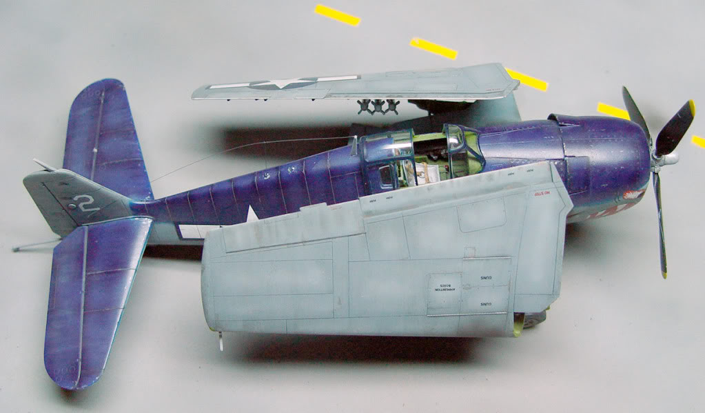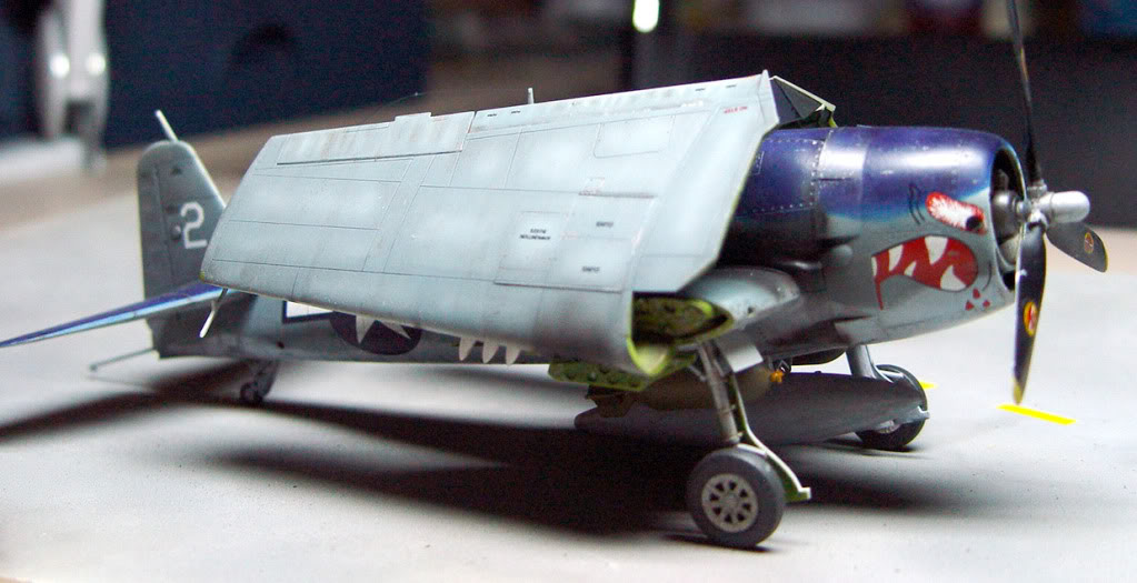 Being an aircraft carrier fighter, you can see on many reference photos the Hellcat depicted with the folded wings. The nice option offered by the Hobby Boss kit is the folded wings, allowing you to depict the airplane as you like more.