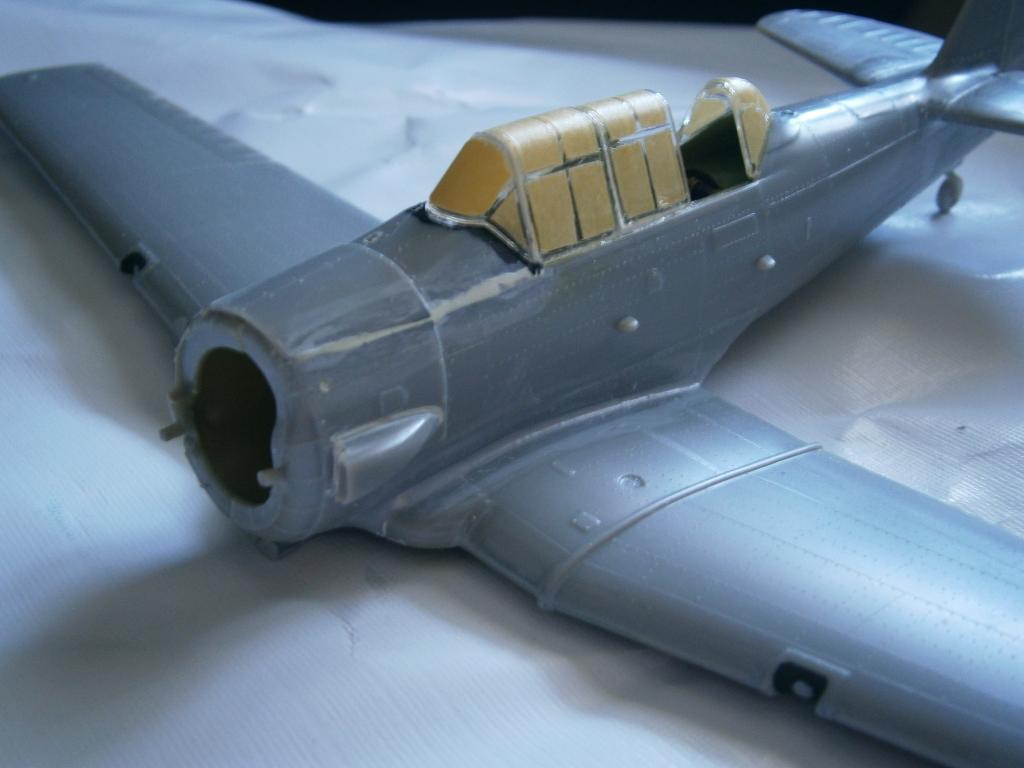 Seams tidied up as best as I could and the canopy masked with strips of Tamiya 10mm cut down and glued into position with krystal klear.