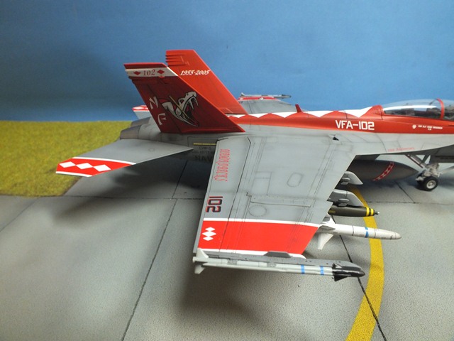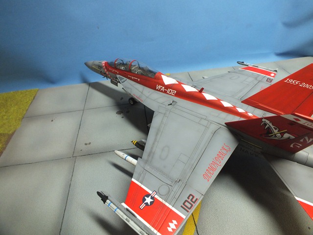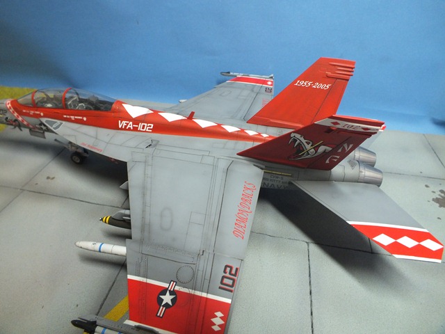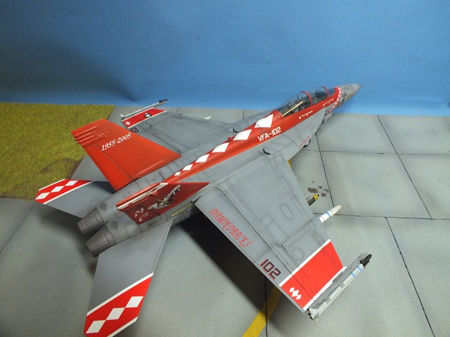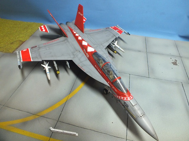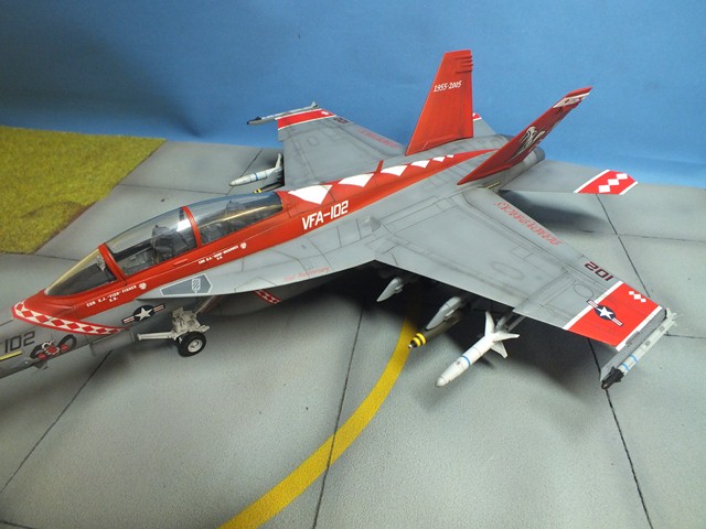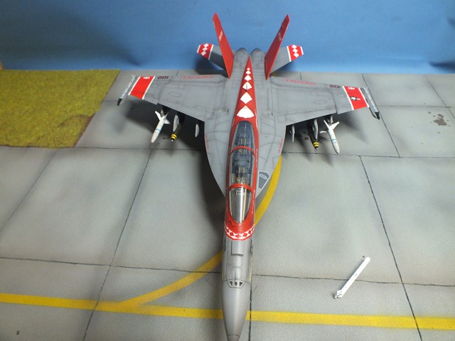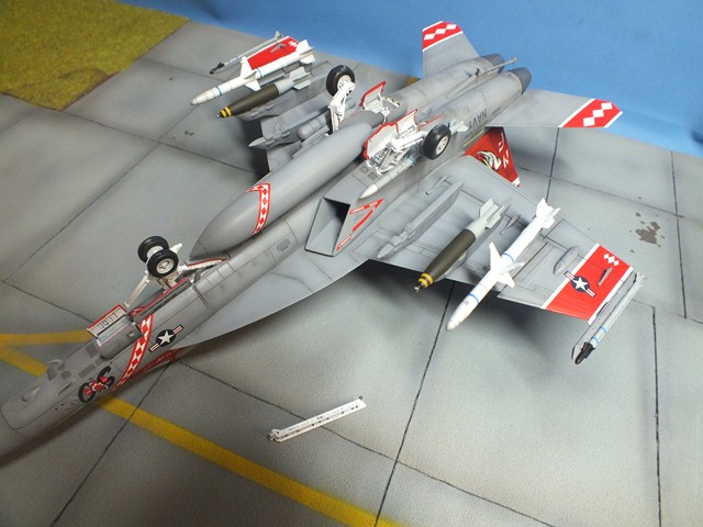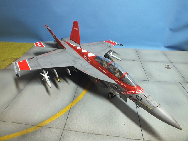 The Boeing F/A-18E/F Super Hornet are twin-engine carrier-based multirole fighter aircraft variants based on the McDonnell Douglas F/A-18 Hornet. The F/A-18E single-seat and F/A-18F tandem-seat variants are larger and more advanced derivatives of the F/A-18C and D Hornet. The Super Hornet has an internal 20 mm gun and can carry air-to-air missiles and air-to-surface weapons. Additional fuel can be carried with up to five external fuel tanks and the aircraft can be configured as an airborne tanker by adding an external air refueling system.