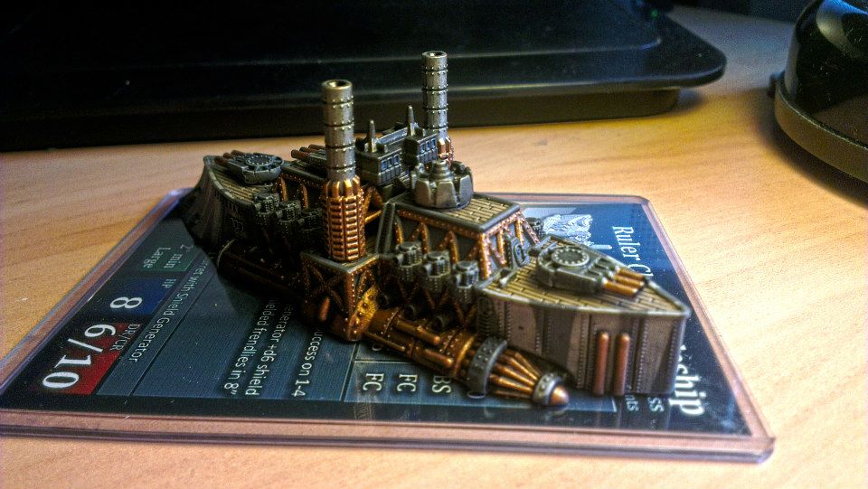 I discovered the Dystopian Wars tabletop RPG only last week after my mate persuaded me to go with him down to a new Wargames shop in my City. I haven't played any sort of Wargame for about 5 years since I used to play Games Workshop's Lord of the Rings and Warhammer 40k. Anyway as soon as I saw the Dystopian Wars miniatures I absolutely loved the Neo-Victorian, Steampunk style of it so I took a bit of my old LOTR stuff down to trade in and picked up this beasty of a vessel as my first dip into the game.